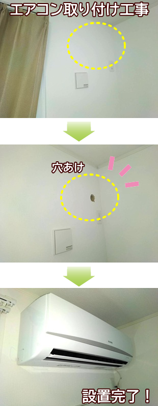 通常のエアコン取り付け作業の流れを 簡単にご説明します♡